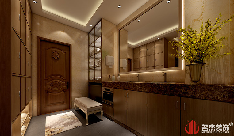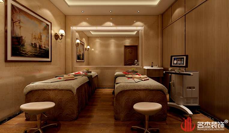 此次美容院裝修整體使用高大上的色調與材料,金黃色的主色調襯托整個店鋪裝飾華麗不失樸素,明黃色的燈光讓人瞬間放松,體會遠離快節奏生活的安靜一刻,比較吸引且適合經常工作后需要放松的顧客。